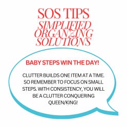 Consistency is the key to success. Set a realistic goal as your schedule allows. Remember, the clutter accumulated one item at a time and you will declutter it one item at a time. And if one hour is too overwhelming, start with 15 minutes. You are the expert on knowing what works for you.