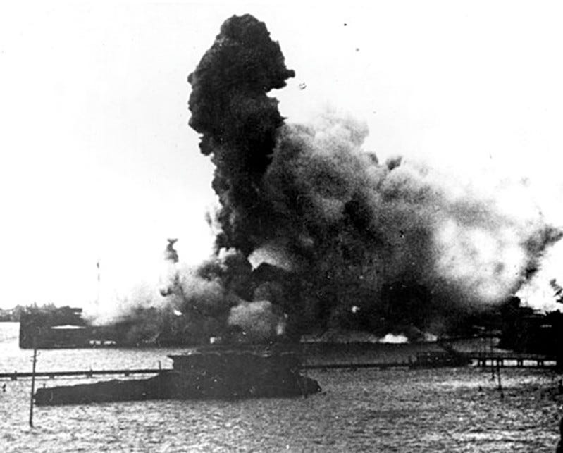 After the obliteration of Pearl Harbor, The USS Arizona Memorial Pearl Harbor is now a memorial, paying homage to the hundreds entombed in its depths. It also has a slow oil leak that is expected to continue for 500 years. (?!) Some historians refer to this ecological disaster as “the black tears of the Arizona.”